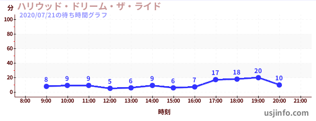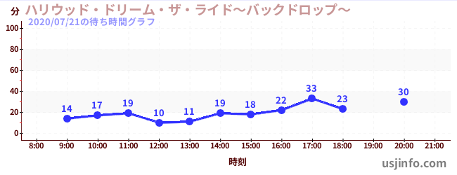 • ハリウッド・ドリーム・ザ・ライド〜バックドロップ〜$B$N(B2020年07月21日の待ち時間