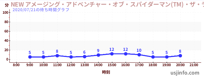• NEW アメージング・アドベンチャー・オブ・スパイダーマン(TM)・ザ・ライド 4K3D$B$N(B2020年07月21日の待ち時間