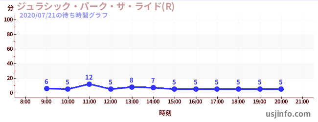 • ジュラシック・パーク・ザ・ライド(R)$B$N(B2020年07月21日の待ち時間