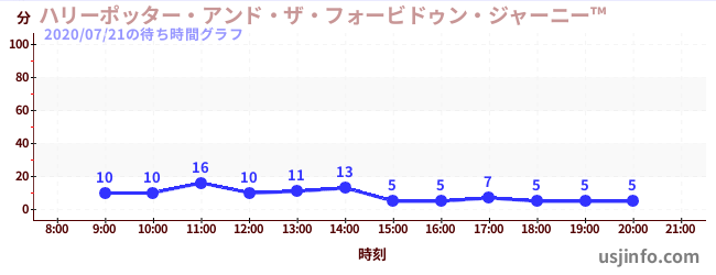 • ハリーポッター・アンド・ザ・フォービドゥン・ジャーニー™$B$N(B2020年07月21日の待ち時間