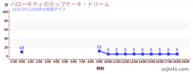 • ハローキティのカップケーキ・ドリーム$B$N(B2020年07月22日の待ち時間
