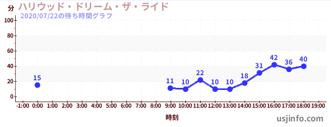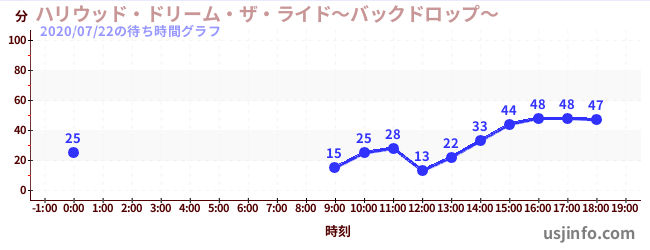 • ハリウッド・ドリーム・ザ・ライド〜バックドロップ〜$B$N(B2020年07月22日の待ち時間