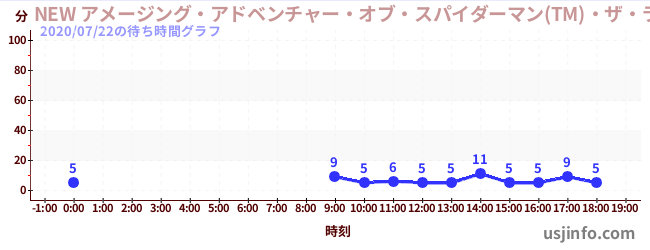 • NEW アメージング・アドベンチャー・オブ・スパイダーマン(TM)・ザ・ライド 4K3D$B$N(B2020年07月22日の待ち時間