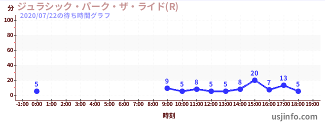 • ジュラシック・パーク・ザ・ライド(R)$B$N(B2020年07月22日の待ち時間