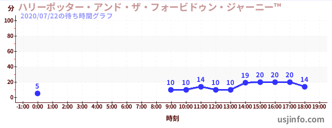 • ハリーポッター・アンド・ザ・フォービドゥン・ジャーニー™$B$N(B2020年07月22日の待ち時間