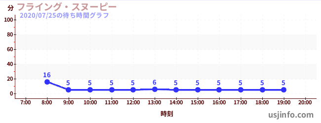 • フライング・スヌーピー$B$N(B2020年07月25日の待ち時間