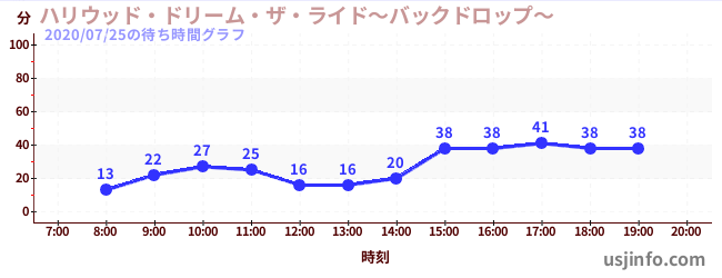 • ハリウッド・ドリーム・ザ・ライド〜バックドロップ〜$B$N(B2020年07月25日の待ち時間