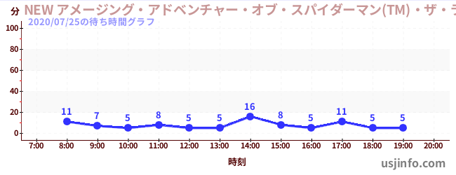 • NEW アメージング・アドベンチャー・オブ・スパイダーマン(TM)・ザ・ライド 4K3D$B$N(B2020年07月25日の待ち時間
