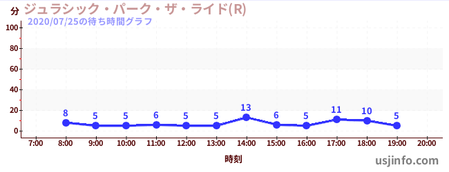 • ジュラシック・パーク・ザ・ライド(R)$B$N(B2020年07月25日の待ち時間