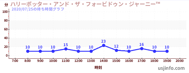 • ハリーポッター・アンド・ザ・フォービドゥン・ジャーニー™$B$N(B2020年07月25日の待ち時間