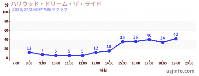 • ハリウッド・ドリーム・ザ・ライド$B$N(B2020年07月25日の待ち時間