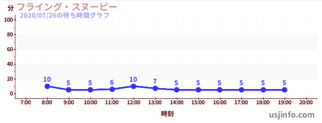 • フライング・スヌーピー$B$N(B2020年07月26日の待ち時間