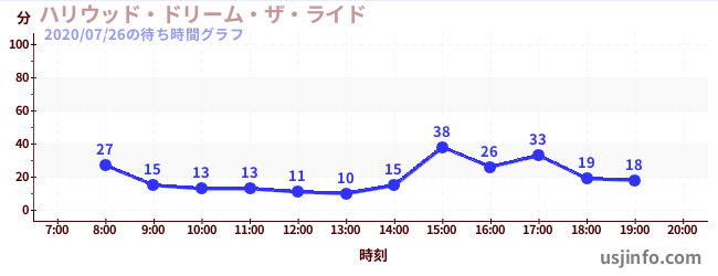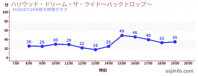 • ハリウッド・ドリーム・ザ・ライド〜バックドロップ〜$B$N(B2020年07月26日の待ち時間