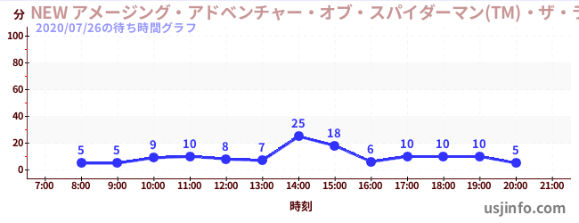 • NEW アメージング・アドベンチャー・オブ・スパイダーマン(TM)・ザ・ライド 4K3D$B$N(B2020年07月26日の待ち時間