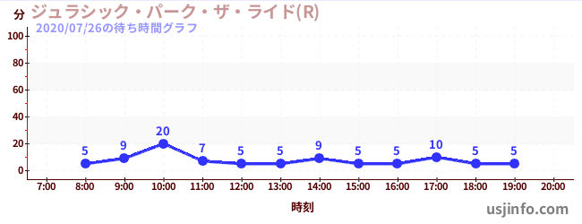 • ジュラシック・パーク・ザ・ライド(R)$B$N(B2020年07月26日の待ち時間