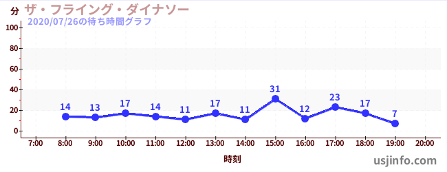 • ザ・フライング・ダイナソー$B$N(B2020年07月26日の待ち時間