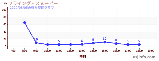 • フライング・スヌーピー$B$N(B2020年08月05日の待ち時間