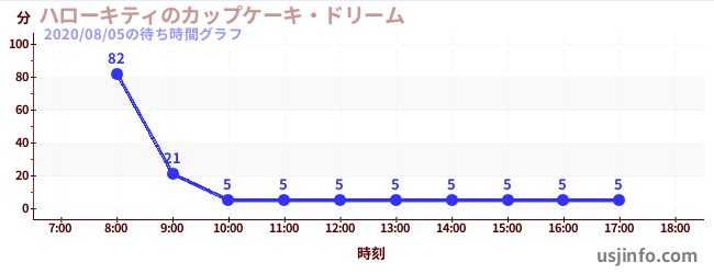 • ハローキティのカップケーキ・ドリーム$B$N(B2020年08月05日の待ち時間