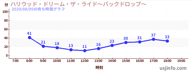• ハリウッド・ドリーム・ザ・ライド〜バックドロップ〜$B$N(B2020年08月05日の待ち時間