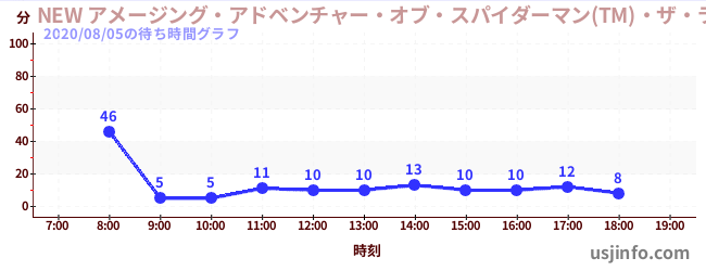 • NEW アメージング・アドベンチャー・オブ・スパイダーマン(TM)・ザ・ライド 4K3D$B$N(B2020年08月05日の待ち時間