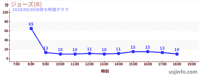 • ジョーズ(R)$B$N(B2020年08月05日の待ち時間