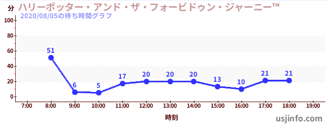 • ハリーポッター・アンド・ザ・フォービドゥン・ジャーニー™$B$N(B2020年08月05日の待ち時間