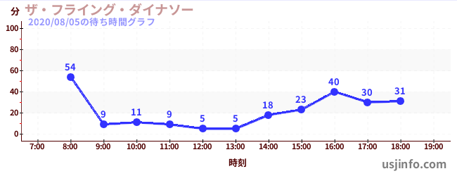• ザ・フライング・ダイナソー$B$N(B2020年08月05日の待ち時間