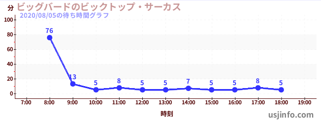 • ビッグバードのビックトップ・サーカス$B$N(B2020年08月05日の待ち時間