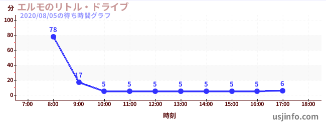 • エルモのリトル・ドライブ$B$N(B2020年08月05日の待ち時間