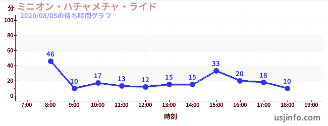 • ミニオン・ハチャメチャ・ライド$B$N(B2020年08月05日の待ち時間