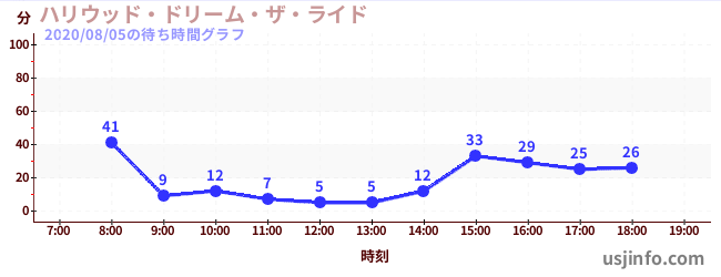 • ハリウッド・ドリーム・ザ・ライド$B$N(B2020年08月05日の待ち時間