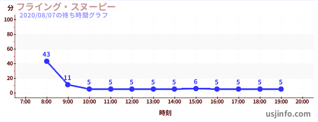 • フライング・スヌーピー$B$N(B2020年08月07日の待ち時間