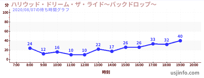 • ハリウッド・ドリーム・ザ・ライド〜バックドロップ〜$B$N(B2020年08月07日の待ち時間
