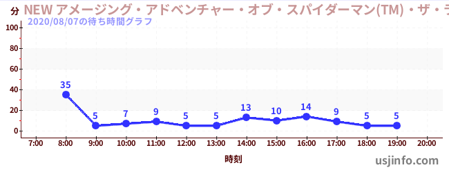 • NEW アメージング・アドベンチャー・オブ・スパイダーマン(TM)・ザ・ライド 4K3D$B$N(B2020年08月07日の待ち時間