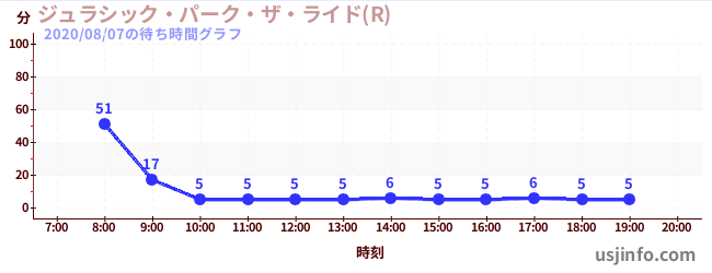 • ジュラシック・パーク・ザ・ライド(R)$B$N(B2020年08月07日の待ち時間