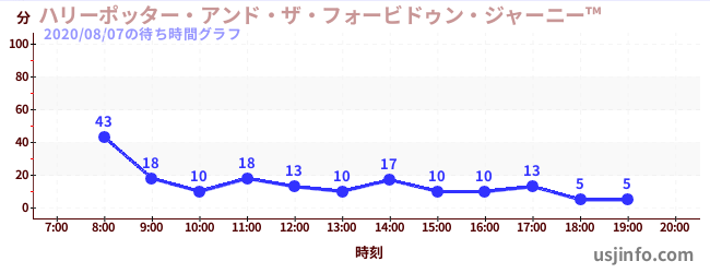 • ハリーポッター・アンド・ザ・フォービドゥン・ジャーニー™$B$N(B2020年08月07日の待ち時間