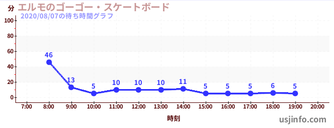 • エルモのゴーゴー・スケートボード$B$N(B2020年08月07日の待ち時間