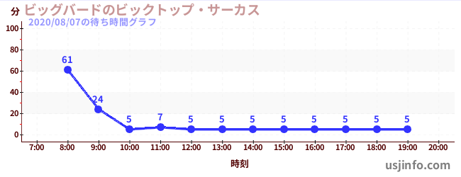 • ビッグバードのビックトップ・サーカス$B$N(B2020年08月07日の待ち時間