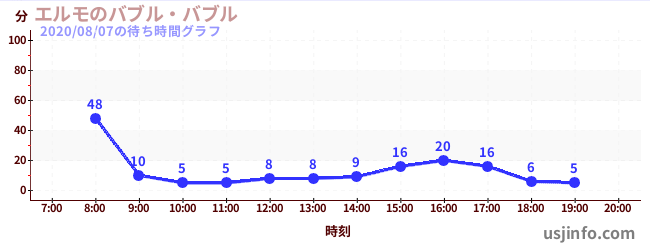 • エルモのバブル・バブル$B$N(B2020年08月07日の待ち時間