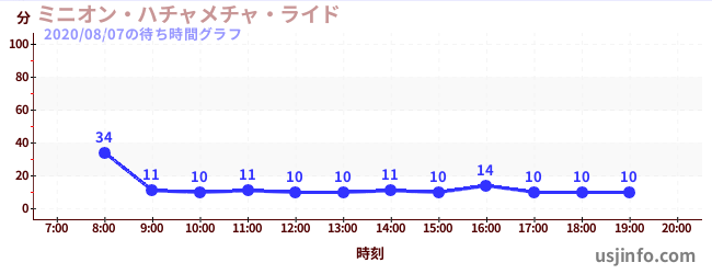 • ミニオン・ハチャメチャ・ライド$B$N(B2020年08月07日の待ち時間