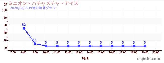 • ミニオン・ハチャメチャ・アイス$B$N(B2020年08月07日の待ち時間