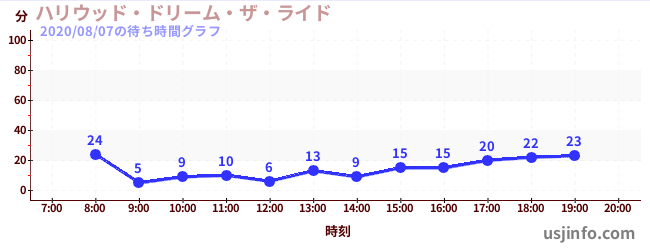 • ハリウッド・ドリーム・ザ・ライド$B$N(B2020年08月07日の待ち時間