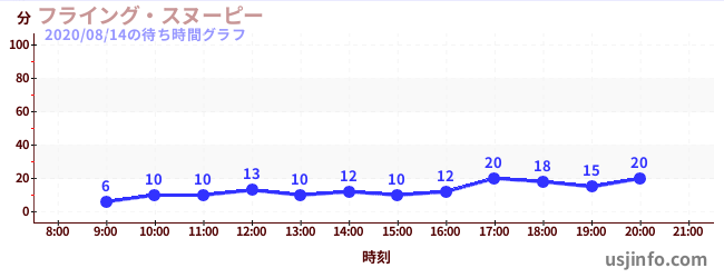 • フライング・スヌーピー$B$N(B2020年08月14日の待ち時間