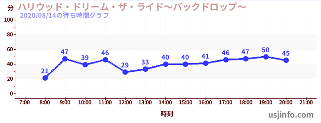 • ハリウッド・ドリーム・ザ・ライド〜バックドロップ〜$B$N(B2020年08月14日の待ち時間