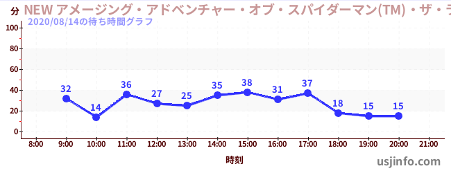 • NEW アメージング・アドベンチャー・オブ・スパイダーマン(TM)・ザ・ライド 4K3D$B$N(B2020年08月14日の待ち時間