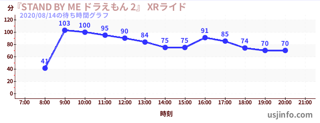 • 『STAND BY ME ドラえもん 2』 XRライド$B$N(B2020年08月14日の待ち時間