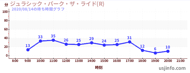 • ジュラシック・パーク・ザ・ライド(R)$B$N(B2020年08月14日の待ち時間