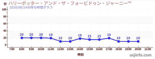 • ハリーポッター・アンド・ザ・フォービドゥン・ジャーニー™$B$N(B2020年08月14日の待ち時間