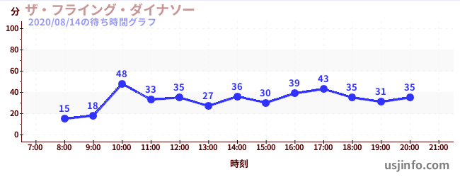 • ザ・フライング・ダイナソー$B$N(B2020年08月14日の待ち時間