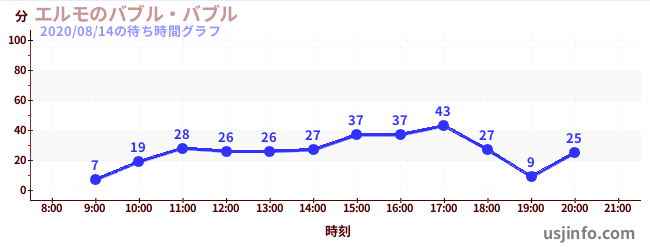 • エルモのバブル・バブル$B$N(B2020年08月14日の待ち時間